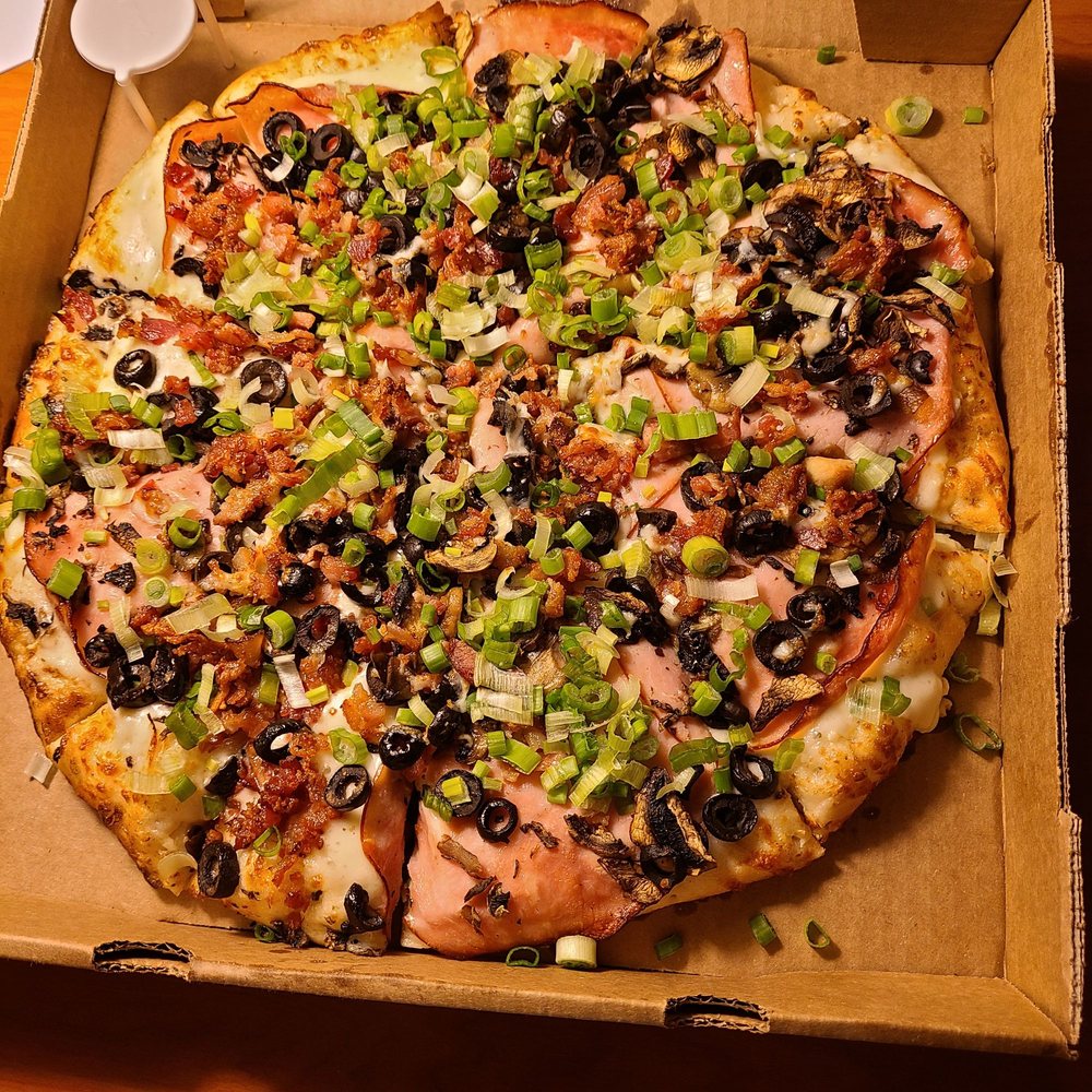 Customize your own open-faced pizza sandwich! We start with a fresh roll, add pizza sauce, mozzarella cheese, and your choice of up to three pizza toppings. Served with chips.